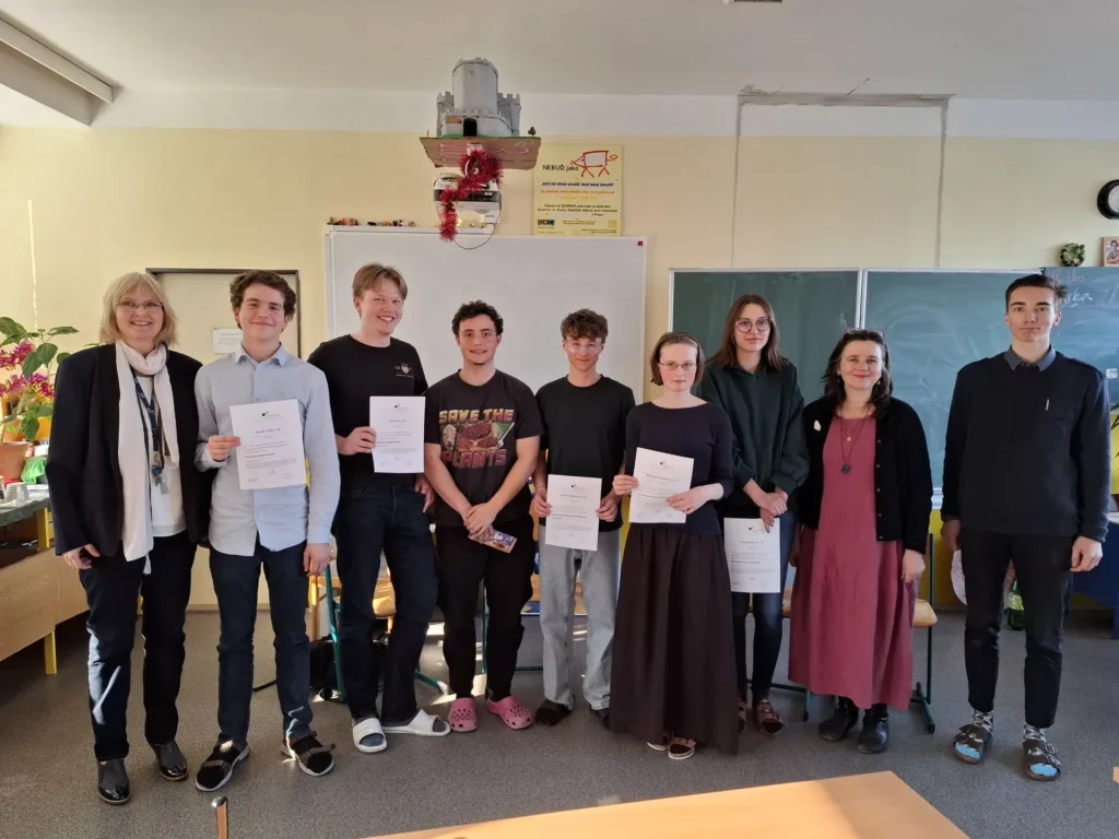Nakonec porota ohodnotila každého debatujícího a vybrala z nich ty nejlepší: Štěpánka Kubartová a Edita Balková. Tyto studentky postupují do regionálního kola, které se bude konat 21. dubna 2026 na gymnáziu Thomase Mann v Praze. Přejeme jim hodně úspěchu!